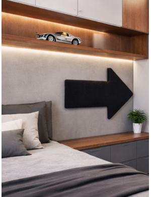 Miękka, tapicerowana powierzchnia skutecznie chroni ścianę, zwiększa bezpieczeństwo i wprowadza do przestrzeni elegancki, wyciszający akcent. Geometryczny kształt ARROW doskonale sprawdzi się zarówno w pokojach dziecięcych, jak i w nowoczesnych, minimalistycznych aranżacjach.